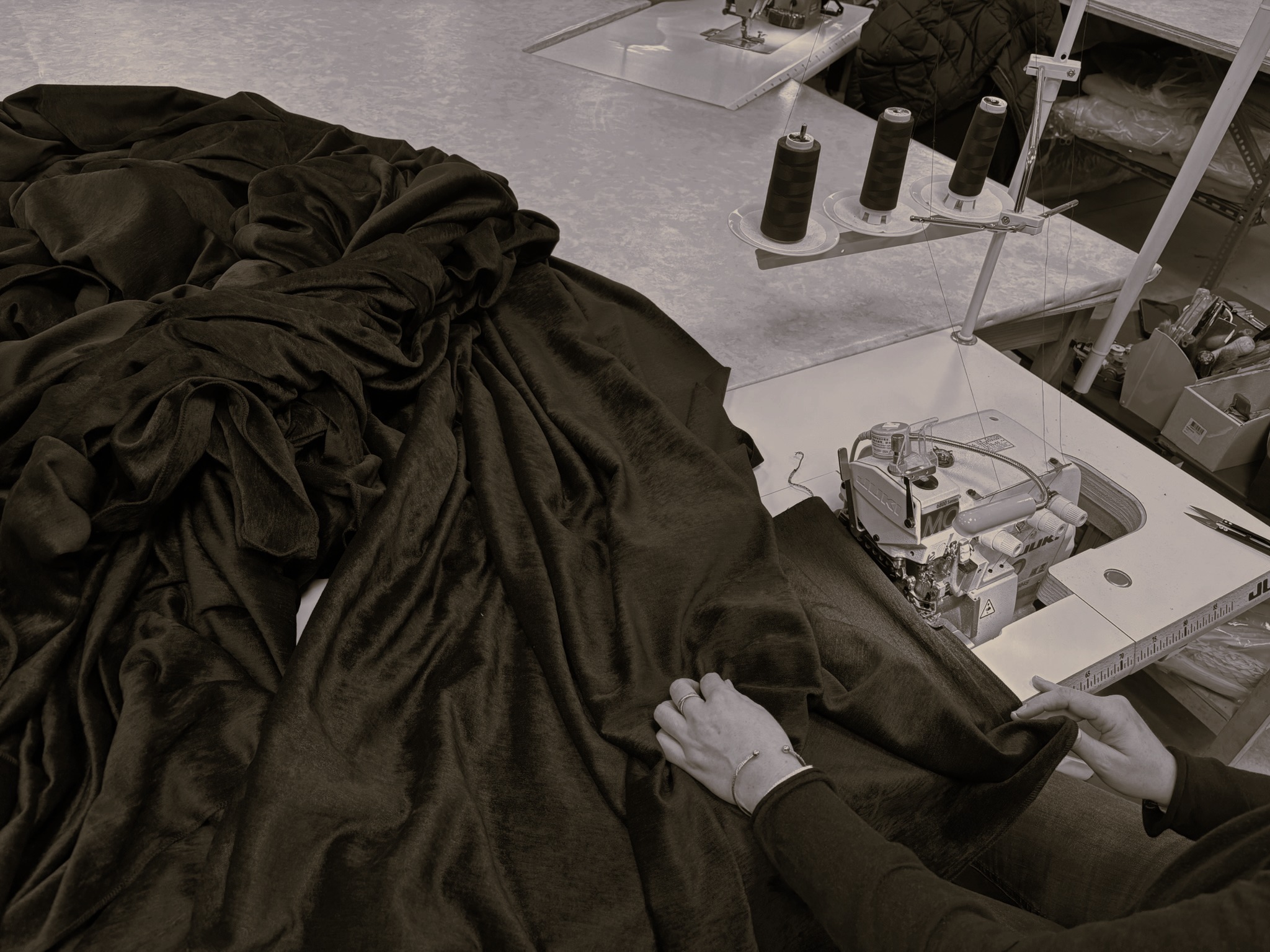 Nos couturières qualifiées travaillent à la main dans nos ateliers pour garantir précision et finitions impeccables.